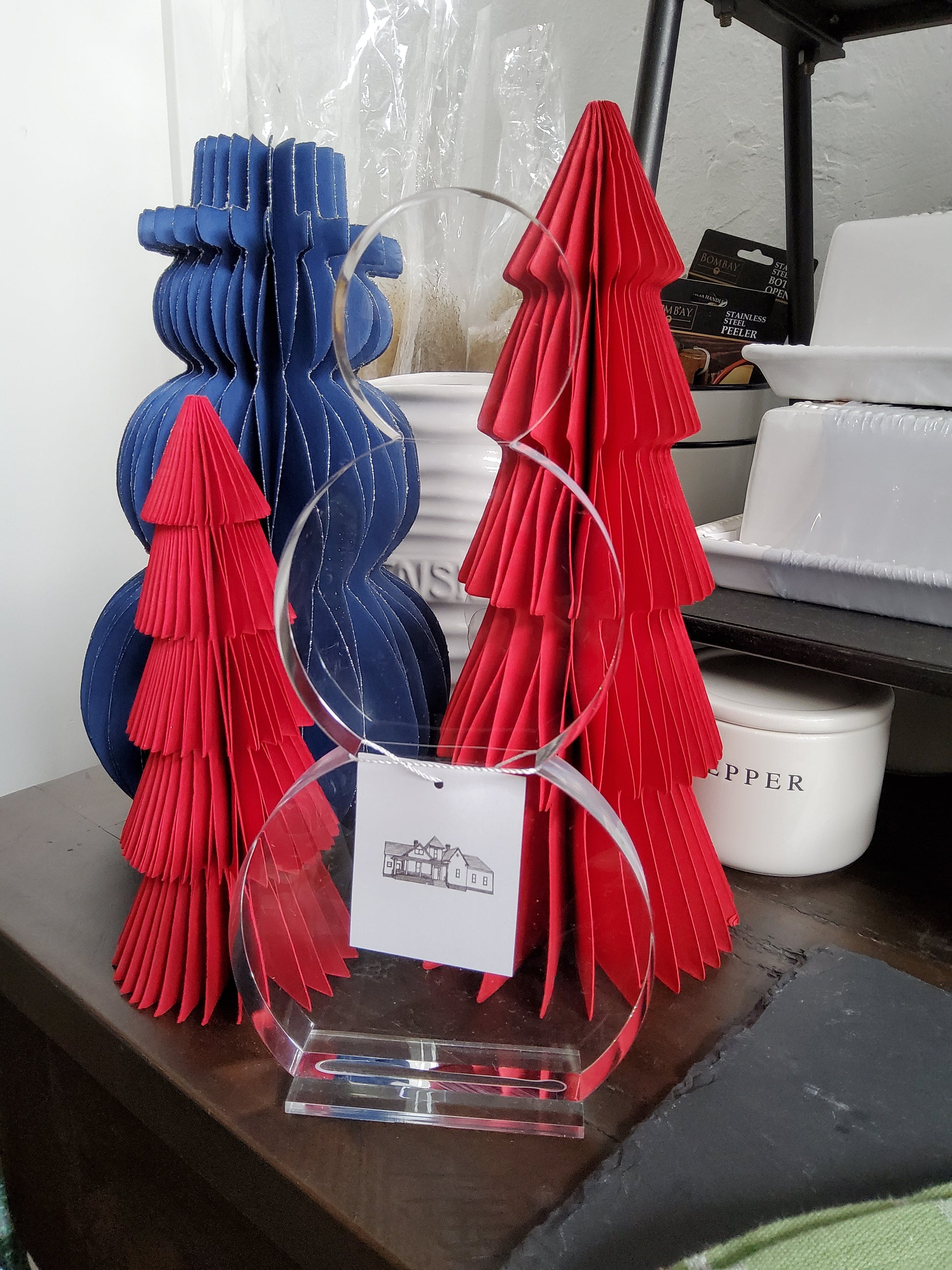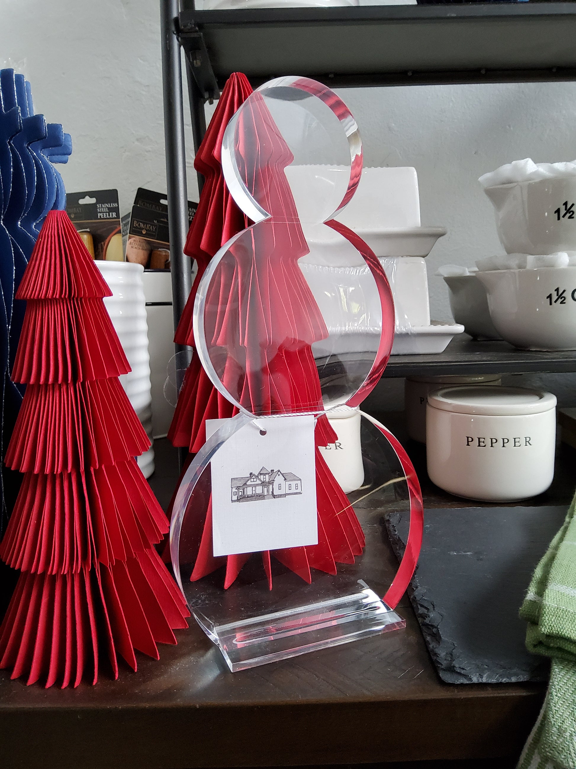 Clear snowman table decor.
